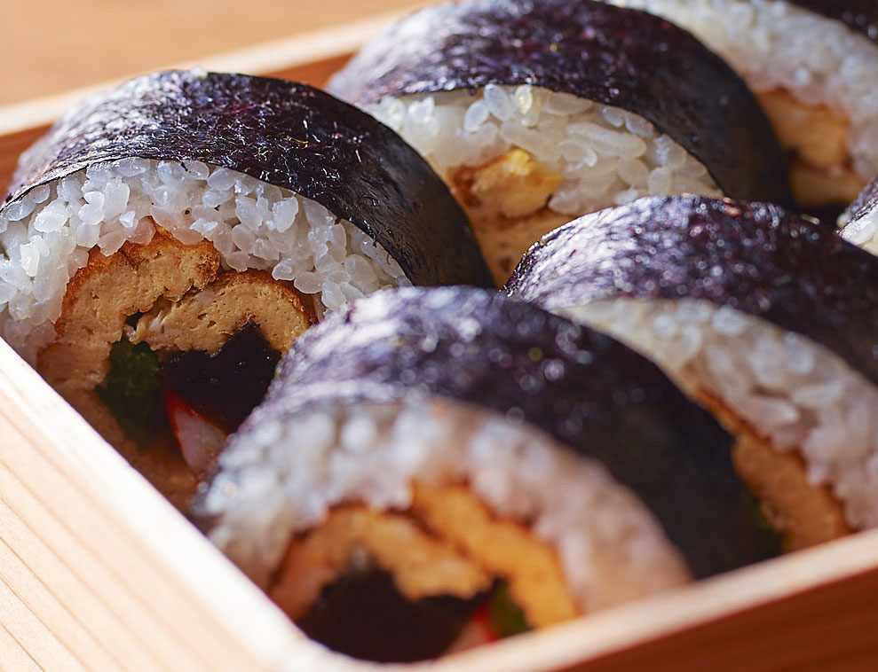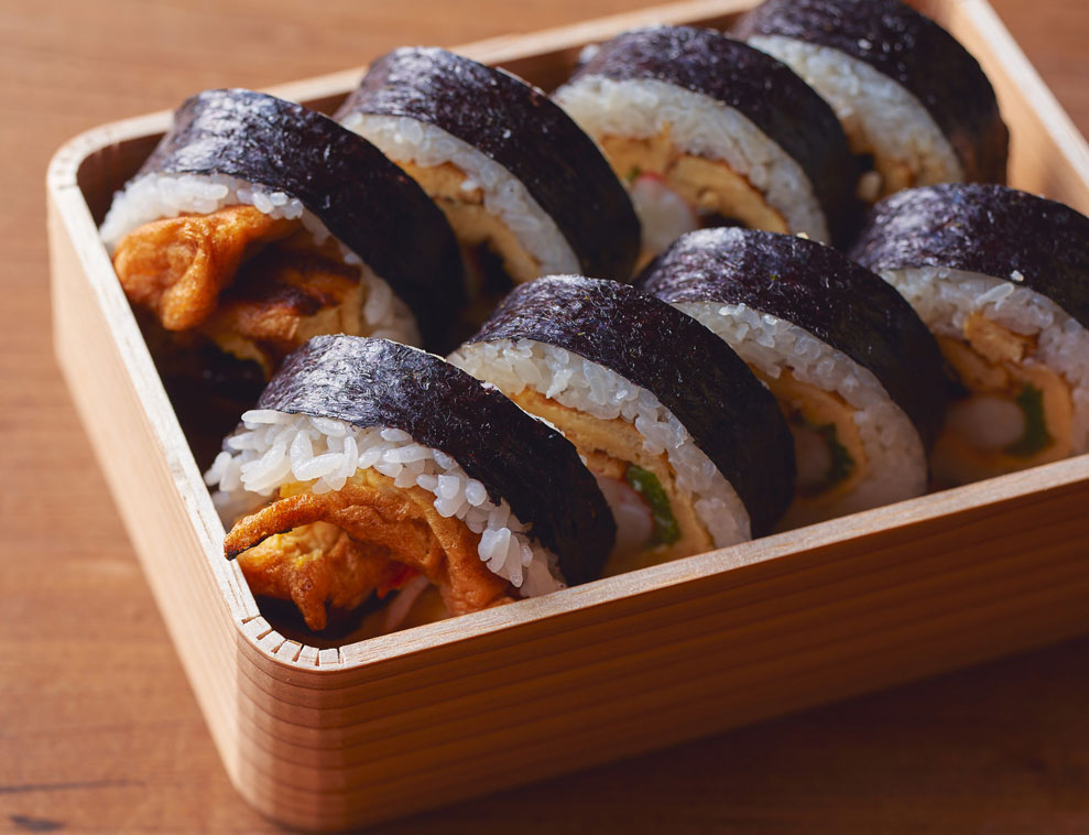 お茶屋さんでの麻雀遊びのお供にお出ししたことから、ひと口で召し上がれる小ぶりのサイズと、ご常連のお好みでさまざまな具材にお応えする蘭の小巻きが誕生しました。