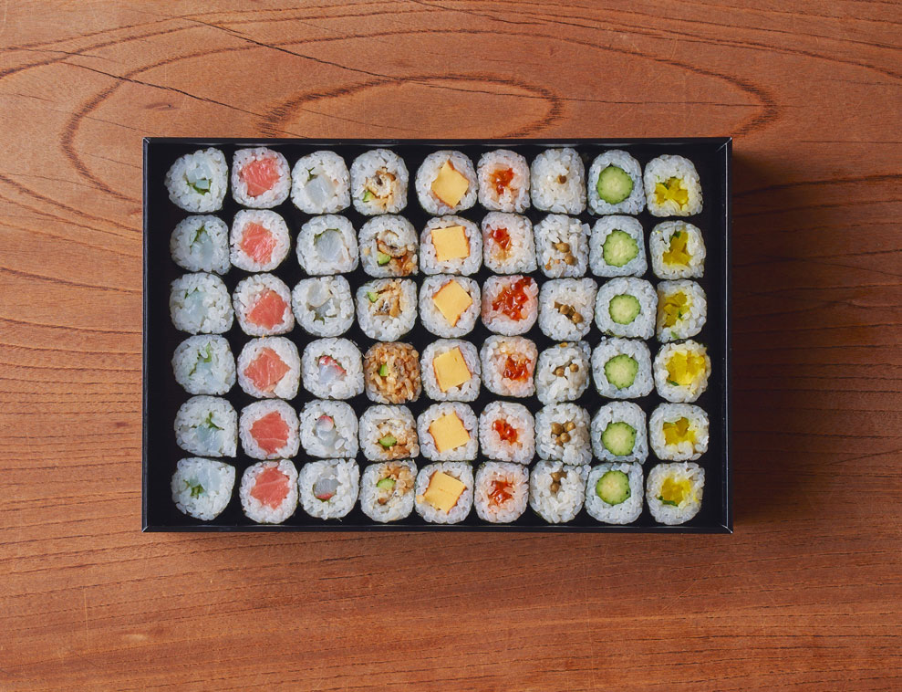 鉄火、胡瓜、玉子焼、穴子、といった定番のほか実山椒、イクラ、納豆など、お好みの具材でお作りします。